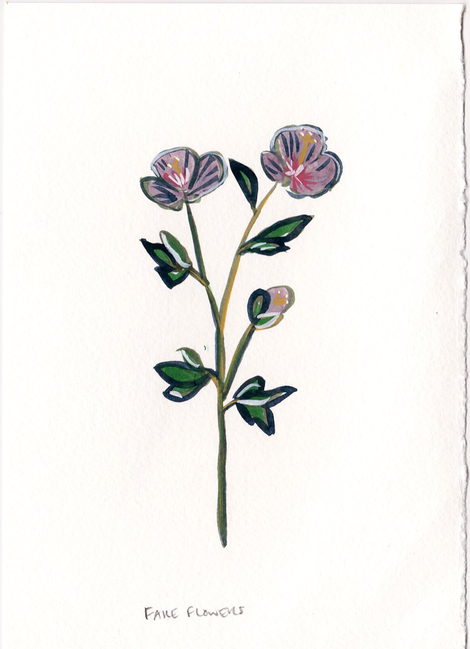 An original painting of a delicate set of fake flowers